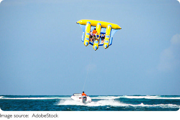 Название может звучать странно, но механизм прост и забавен. На воде располагается огромная надувная подушка. Один человек прыгает на один её конец — и другой взлетает с противоположного.