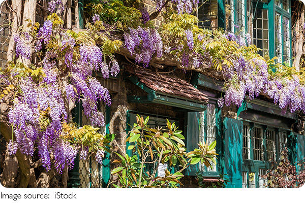 Wisteria sinensis is a patient artist. Its flowers appear along long hanging clusters, each tiny blossom perfectly arranged to create the effect of a cascading floral waterfall. Clusters can reach up to a foot in length, their weight pulling the vines down in elegant arcs.