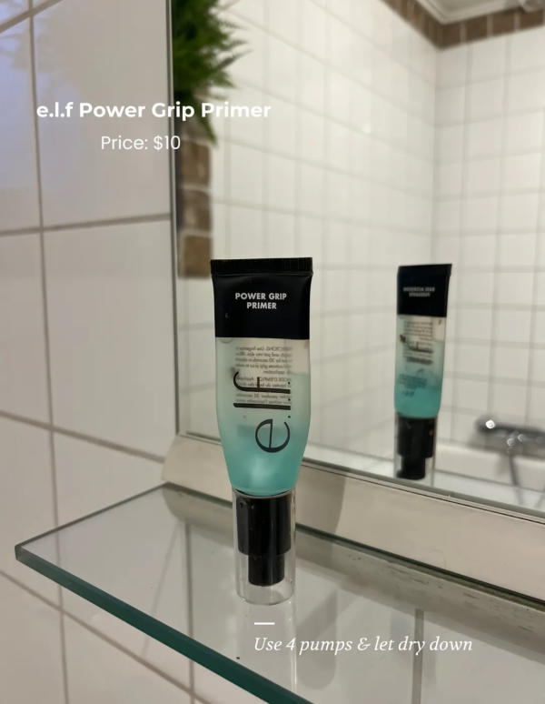 Use e.l.f Power Grip Primer to create a smooth canvas. This helps foundation adhere better and extends the wear of your makeup.