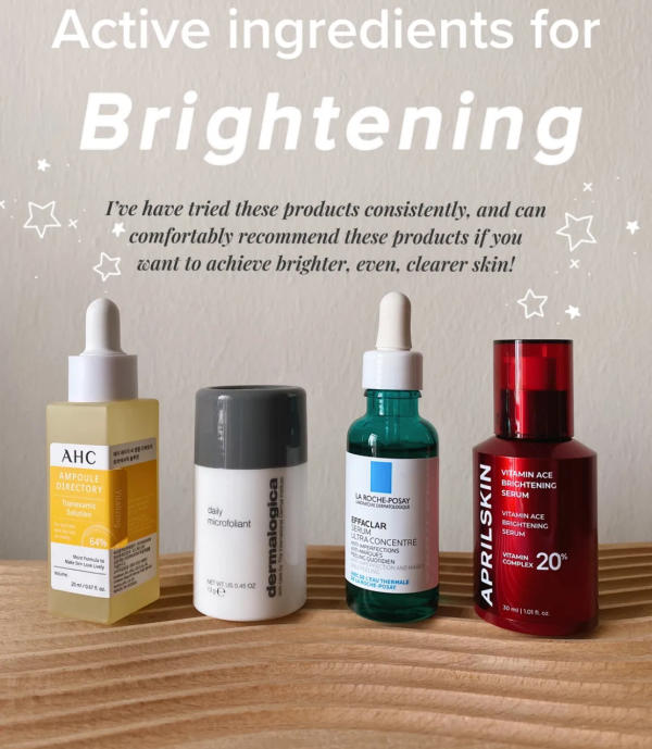 Each product brightens in its own unique way, whether by lifting away dullness, calming inflammation, or preventing new pigment from forming. When paired thoughtfully, they can help pigmented skin look clearer, healthier, and more even. Want a tailored routine using these? I can help build one!