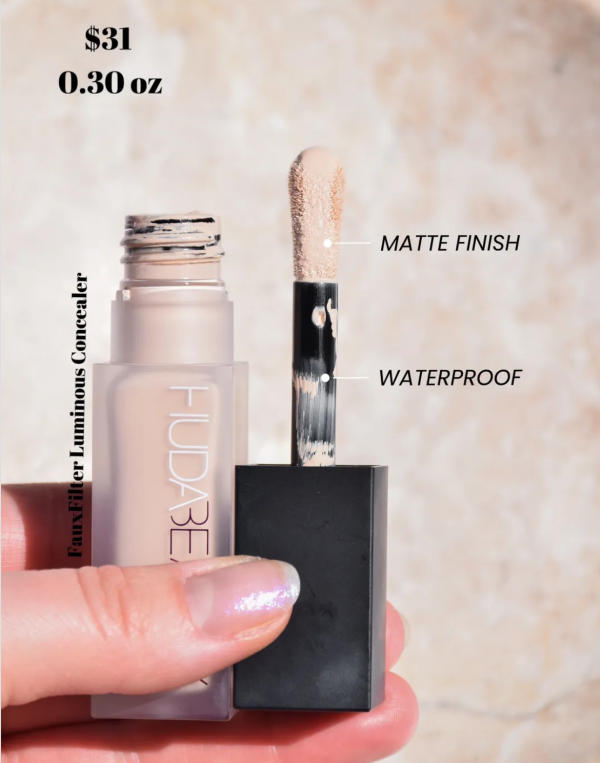 3. Huda Beauty Luminous Matte Buildable Coverage Crease Proof Concealer