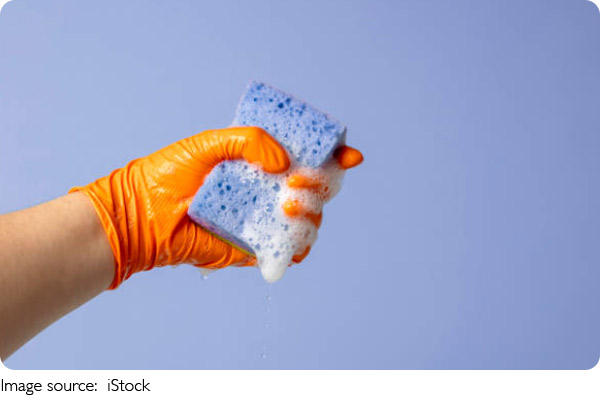 4. Scrub gently with a sponge, then rinse thoroughly.