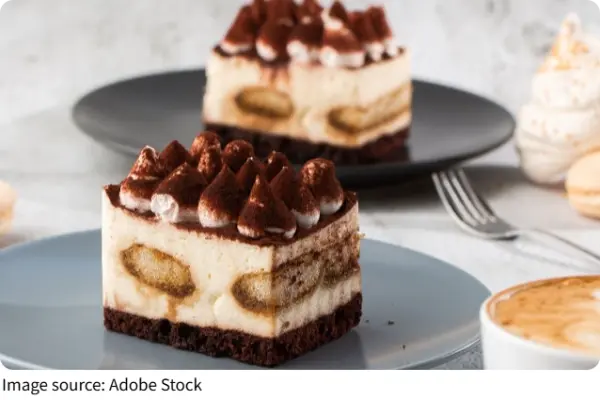 3. Tiramisu: Soft layers of coffee-soaked ladyfingers and mascarpone cream make every bite feel luxurious.