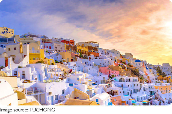 Oia, on Greece's Santorini Island, is one of the world's most picturesque towns. Whitewashed houses, blue-domed chapels, and the sparkling Aegean Sea create postcard-perfect scenery.