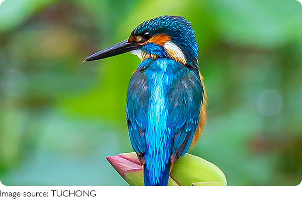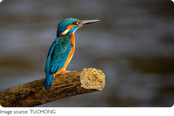 We can easily recognize kingfishers by their big heads, long, pointed beaks, short legs, and stubby tails. Many species have stunningly bright plumage, often showing little difference between males and females. With 118 known species divided into three subfamilies and 19 genera, kingfishers are a diverse group.