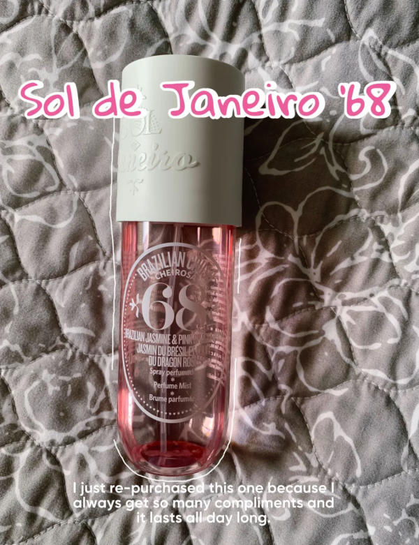 All four of these body mists last beautifully, smell incredible, and get noticed in the best way. Sol de Janeiro brings the soft floral and beachy vibes, Bath & Body Works gives cozy vanilla warmth, and Ariana Grande Cloud adds that dreamy, sweet signature scent. A perfect mix for any season and any mood!
