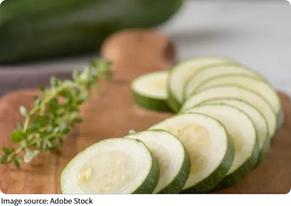 3. Slice the zucchinis in half lengthwise, peel slightly if the skin tastes bitter, and cut into small cubes.