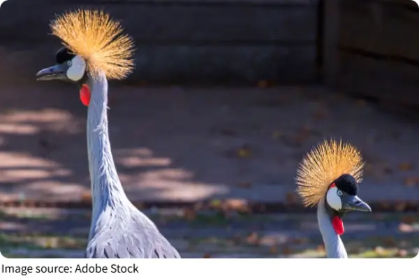 This crane species, native to parts of sub-Saharan Africa, is instantly recognizable by its regal golden crown and grey plumage.