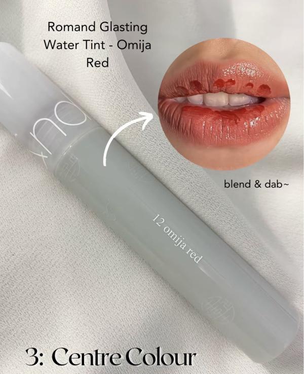 For the final touch, I dab Romand Glasting Water Tint in Omija Red right in the center of my lips. A little goes a long way here. Gently tap it out using your finger or a lip brush until it blends seamlessly into the transition shade. This step gives that signature ombré depth and makes the lips instantly eye-catching.