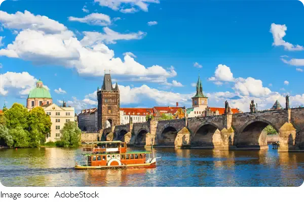 Charles Bridge is a historic stone bridge dating back to the 14th century, adorned with Baroque statues and spanning the Vltava River. It is one of Europe's most romantic and photographed bridges.