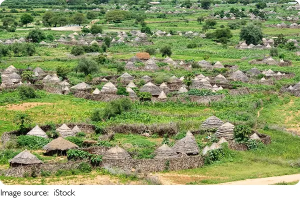 Villages here are small, often centered around thatched huts, farmland, and livestock enclosures. Walking through dusty paths, we can immediately sense how daily life revolves around family, livestock, and seasonal farming.