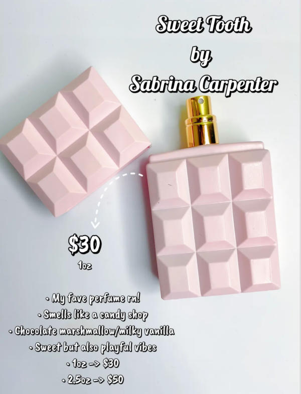 This perfume is pure dessert in a bottle. Think candy shop meets creamy chocolate—sweet, cozy, and absolutely delicious. It even comes in the cutest pink chocolate-bar packaging! Sabrina recently released another version called Caramel Dreams, and once I can grab it, I’ll spill all the details for you.