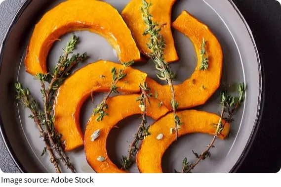 5. Roast in the oven for 25 minutes. The pumpkin should be soft inside with lightly golden edges.