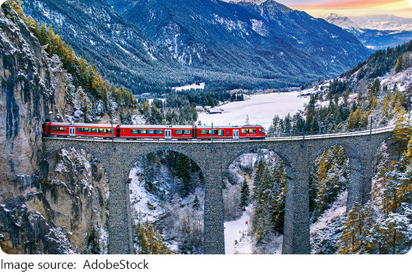 - Scenic Trains: Glacier Express or Bernina Express run over the Albula line, including Landwasser Viaduct; prices range $80–$150 per segment depending on class.