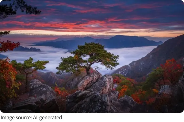 – Yeongbong Peak Trail (via Songgye Valley): Challenging ~8 km hike, gorgeous panoramic views (~5–5.5 hrs).