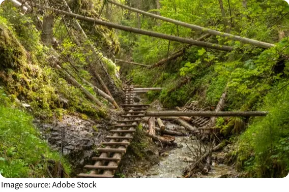 Located in eastern Slovakia, this national park is famous for adventurous hiking routes that guide visitors through narrow canyons, mossy forests, and crystal-clear streams. Unlike many mountain parks where you simply follow dirt paths, here you climb ladders, cross small bridges, and follow wooden platforms attached to canyon walls.