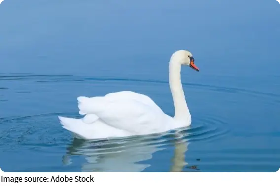 The elegant, curved shape of a swan's body reduces drag in water, allowing for smooth swimming and agile movements. Coupled with strong legs and webbed feet, swans can maneuver gracefully while foraging or escaping predators.