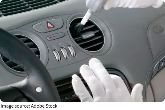Beyond the console, seats, and AC, there are areas that are harder to clean, like the ceiling, small crevices, and storage compartments. A soft-bristled brush works perfectly for the ceiling, lifting dust without scratching the surface. For narrow gaps or difficult-to-reach areas, we can use small detailing brushes or cotton swabs. If cleaning becomes too challenging, visiting a professional service is a safe option.