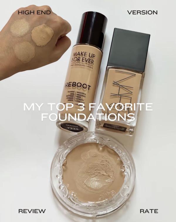 Каждое средство даёт свой эффект: NARS придаёт коже лёгкое сияние, MAKE UP FOR EVER обеспечивает профессиональную стойкость и гибкость покрытия, а KVD создаёт гладкий, естественный тон, который остаётся комфортным на протяжении всего дня.